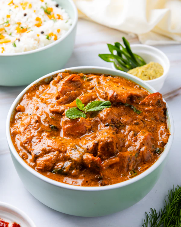 Country chicken slow-cooked in thick dry-roasted masala — rich, bold and rustic. Best with rice